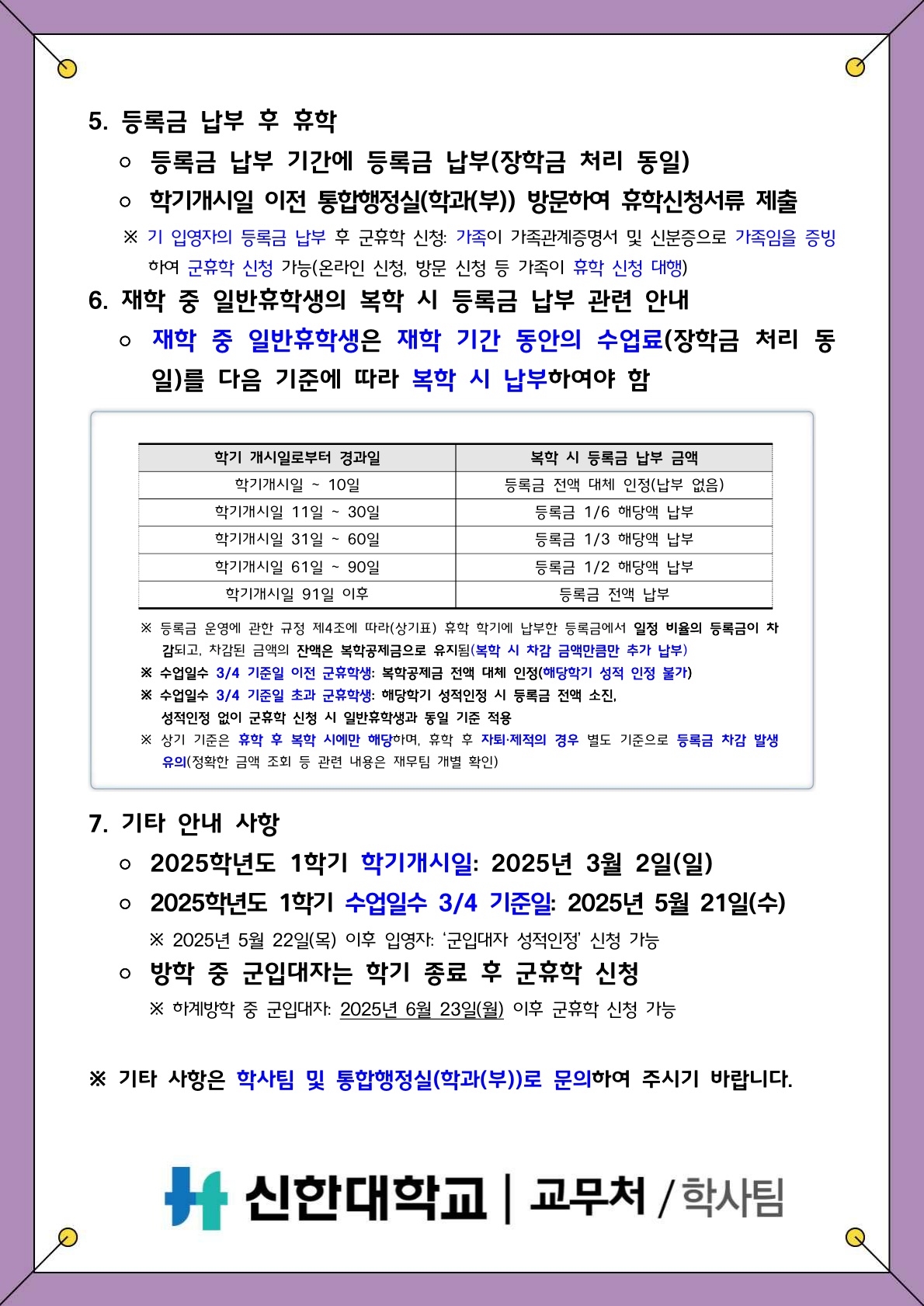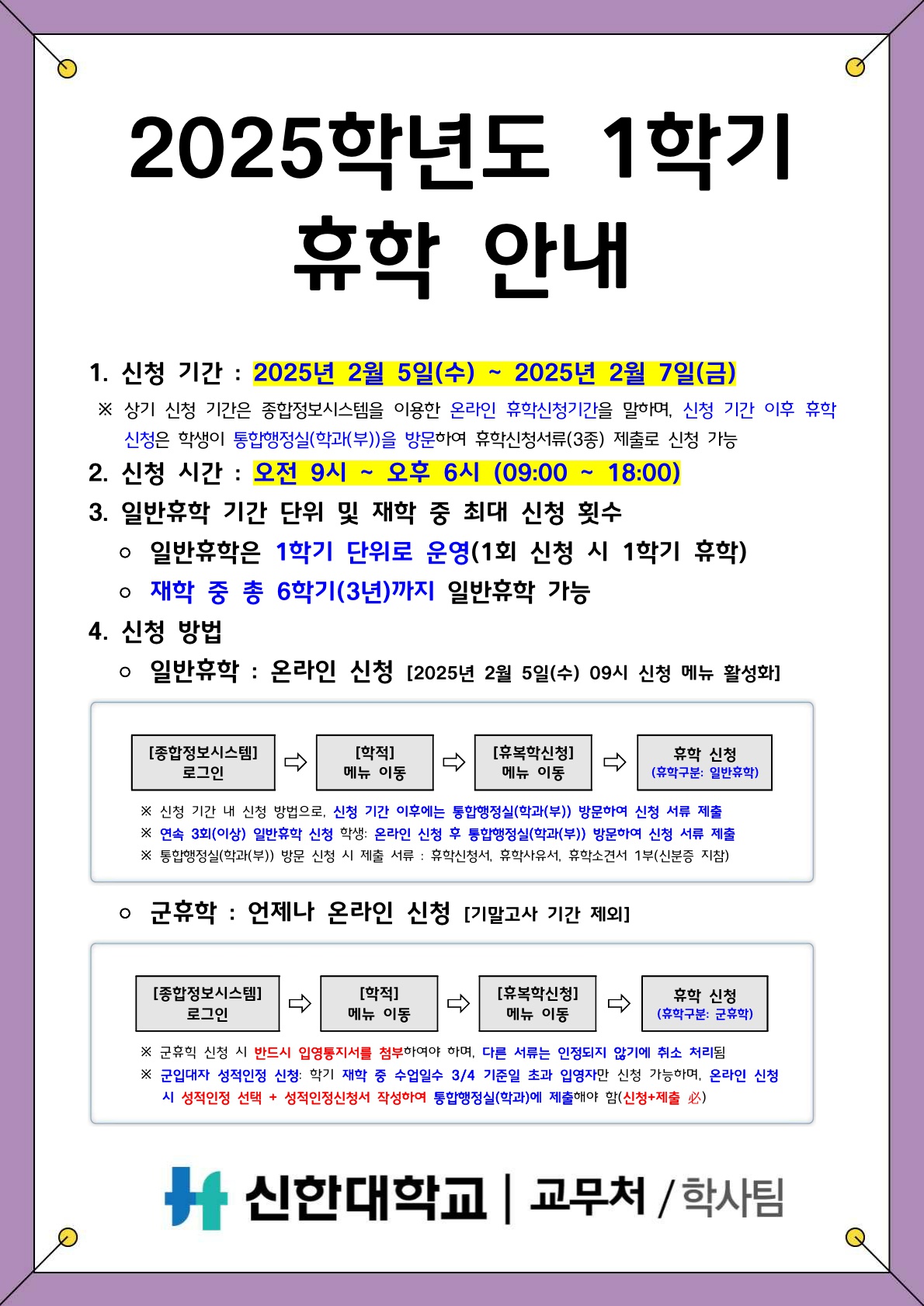 [학적] 2025학년도 1학기 휴학 안내