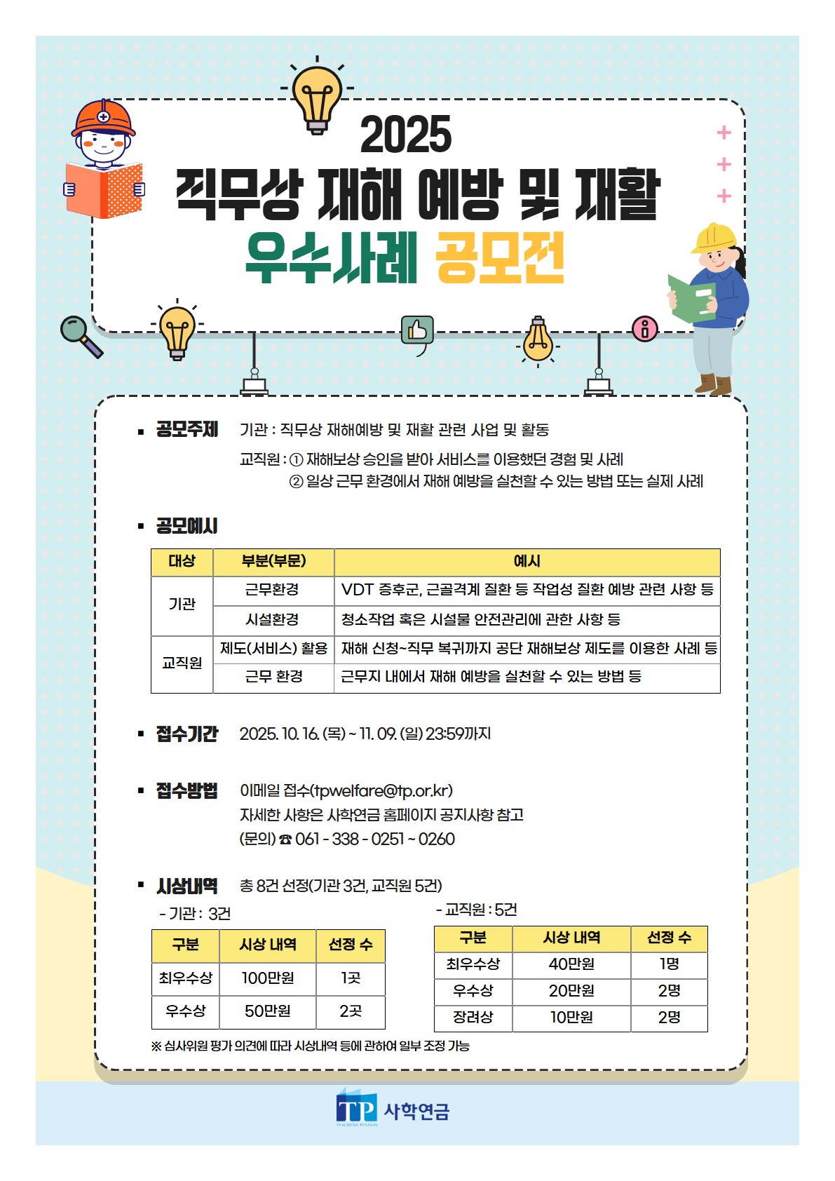 2025년 사학연금 직무상 재해예방 및 재활 우수사례 공모전 개최 안내