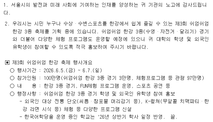 2026 제3회 쉬엄쉬엄 한강 3종 축제 참여 홍보