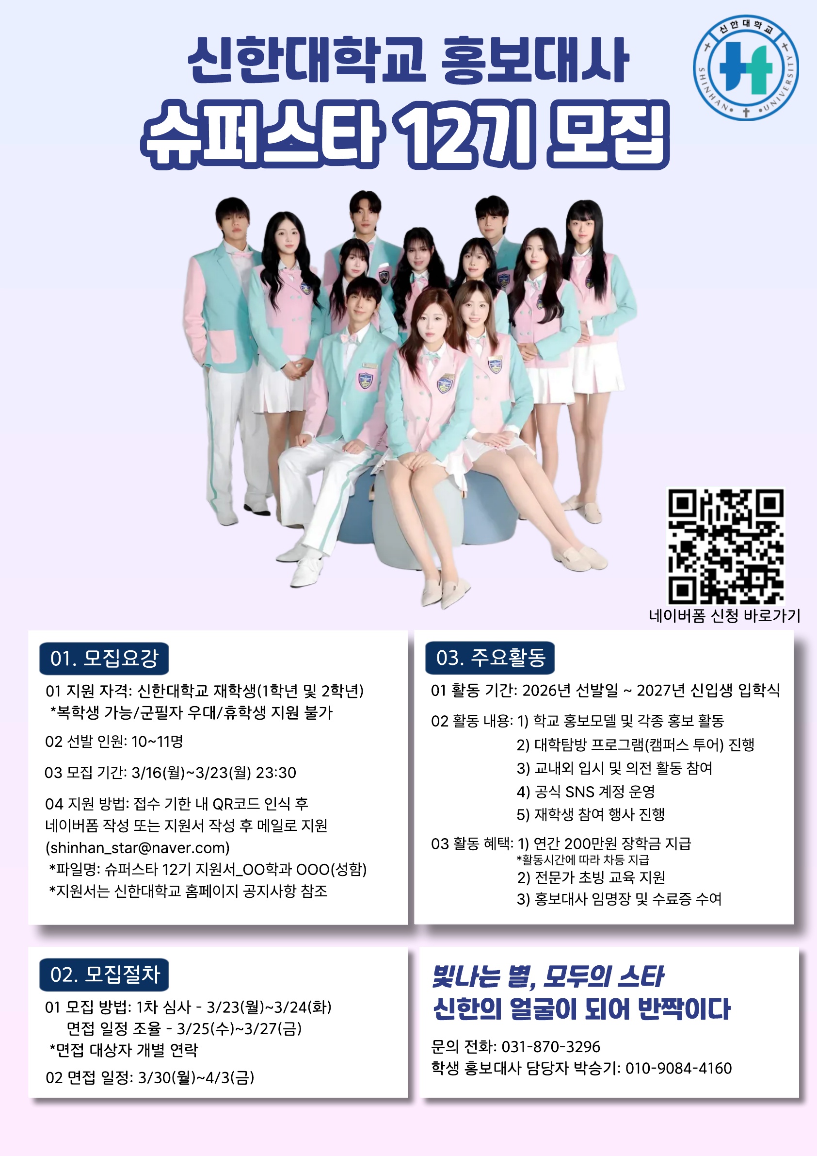 [홍보대사] 신한대학교 신한슈퍼스타 12기 모집 안내 ~3/23까지